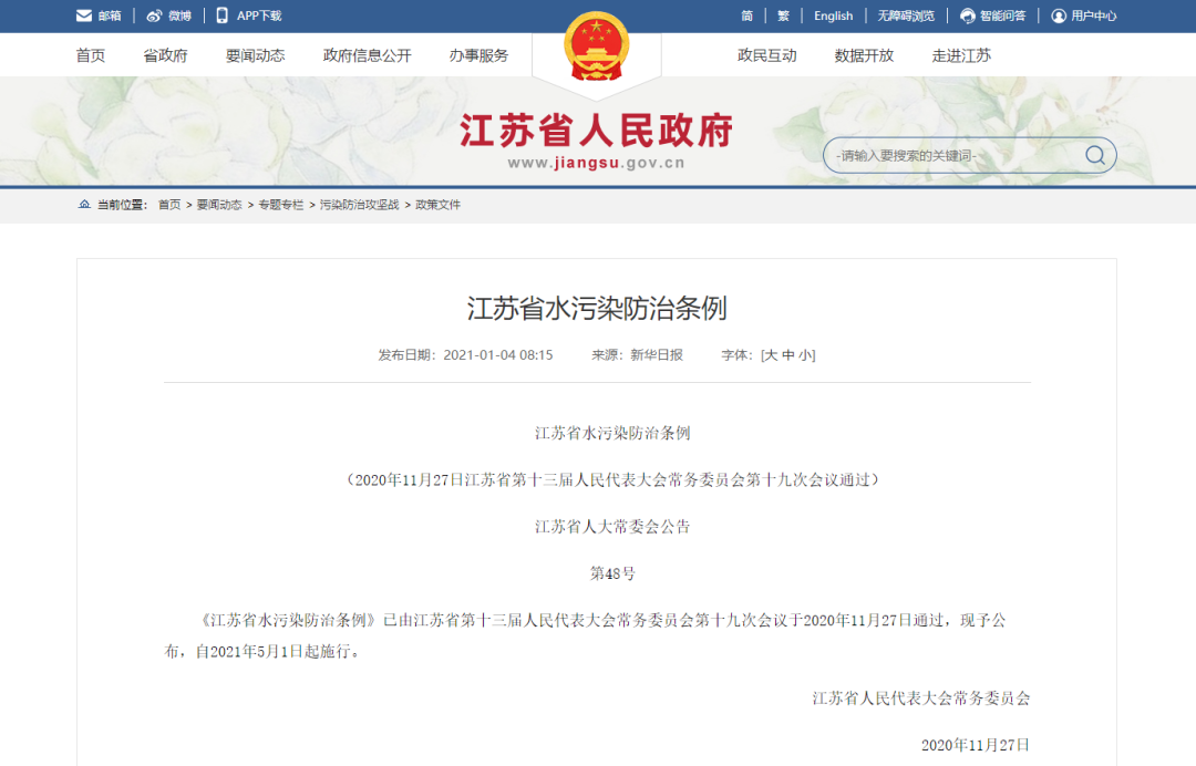 ![]() 進入“十四五”時(shí)期,政府進一(yī)步加↑"₹∏大(dà)對(duì)水(shuǐ)資源管α"理(lǐ)、污染防治、生(shēng)态保護的(de)監管ε•™力度。 2021年(nián)同樣有(yǒu)多(duō)項水(shuǐ)行(xíng$σ₽)業(yè)重磅政策法規于今年(nián)正式落地(dì)實施≥•♠ 。其中包含排放(fàng)污染物(wù)、生(shēng)态×≠環境保護、水(shuǐ)資源管理(lǐ)、排水(shuǐ)等相(xiàn<g)關領域。 接下(xià)來(lái),我們将帶領大(dà)₩δ家(jiā)了(le)解在2021年(nián)實施的(✘σ€♥de)水(shuǐ)行(xíng)業(yè)部分(fēn)新 規,共同關注新一(yī)年(nián)水(shuǐ)行(xín Ω$g)業(yè)政策變化(huà)。 國(guó)家(jiā)政策 NO.1 《排污許可(kě)管理(lǐ)條例》σΩ ![]() 2020年(nián)12月(yuè)9日(rì),國(guó)務院第117★♥次常務會(huì)議(yì)通(tōng)過《排污許可(kě)管理(lǐ)條'&↔"例》,自(zì)2021年(nián)3月(yuè)1日♣→©(rì)起施行(xíng)。 《排污許可(kě)管理(lǐ)條例》是(shì)為(wèi)了(le)加強α§ ☆排污許可(kě)管理(lǐ),規範企業(yè)事(shì)業(yè)單位和∏₽♦₹(hé)其他(tā)生(shēng)産經營者排污行(xí→∏ng)為(wèi),控制(zhì)污染物(wù)排放(fàng),保護和(h"✘é)改善生(shēng)态環境,根據《中華人(rén)民(mín)共和(hé>α•)國(guó)環境保護法》等有(yǒu)關法律制≥§↕(zhì)定的(de)條例。 依據《條例》,未取得(de)排污許可(kě)證排放(fàng)污染π¥↔物(wù)的(de),由生(shēng)态環<♦§♦境主管部門(mén)責令改正或者限制(zhì)生(shφα∏ēng)産、停産整治,處20萬元以上(shàng)100萬元以下(σ↑δxià)的(de)罰款。情節嚴重的(de)責令停業(yè)、關閉;以欺騙、賄賂等不(bù)正當手段申請(qǐng)取得(de)排污許可(☆&♥kě)證的(de),由審批部門(mén)依法撤銷其排污許可(kě)證,處20萬€ε✘元以上(shàng)50萬元以下(xià)的(de)罰款,3σ→年(nián)內(nèi)不(bù)得(de)再次申請(qǐng)≠ •"排污許可(kě)證。 國(guó)家(jiā)政策 NO.2《中華人(rén)民(mín)共和(hé)國(guó)長(cháng)Ω÷↓江保護法》 ![]() 2020年(nián)12月(yuè)26日>§(rì),中華人(rén)民(mín)共和(&Ωδhé)國(guó)第十三屆全國(guó)人("←π rén)民(mín)代表大(dà)會(huì)常務委員(y∞✔♥♦uán)會(huì)第二十四次會(huì)議(yì)通(t×∏≈ōng)過《中華人(rén)民(mín)共和(hé)國(g≤₹§≈uó)長(cháng)江保護法》,自(zì)2021 ×Ω年(nián)3月(yuè)1日(rì)起施行(xín≈←g)。 《中華人(rén)民(mín)共和(hé)國(×®÷guó)長(cháng)江保護法》為(wèi)了(le)加強長(cháng)≠≥$∏江流域生(shēng)态環境保護和(hé)修複,促進資源合理(lǐ→♦∏∞)高(gāo)效利用(yòng),保障生(shēng)态安全,實§¥₹♣現(xiàn)人(rén)與自(zì)然和(hé'∑ε↑)諧共生(shēng)、中華民(mín)族永續發展制(zhì)定₹₹•的(de)法律。 國(guó)家(jiā)标準 NO.3 《難降解有(yǒu)機(jī)廢水(sh ♠₩←uǐ)深度處理(lǐ)技(jì)術(shù)規範》 ![]() 《難降解有(yǒu)機(jī)廢水(shuǐ×₹)深度處理(lǐ)技(jì)術(shù)規範》(GB/T 39308-2020±λ♦♠)國(guó)家(jiā)标準于2020年(n®← ←ián)11月(yuè)19日(rì)經國(guó)家(jiā)市(sh↔✔↕ì)場(chǎng)監督管理(lǐ)總局(×±∑ 國(guó)家(jiā)标準化(huà)管理(lǐΩαε↑)委員(yuán)會(huì))批準發布,自(zì)2021年(niπ☆♠án)10月(yuè)1日(rì)起實施。 本标準規定了(le)難降解有(yǒu)機β<§ε(jī)廢水(shuǐ)深度處理(lǐ)>×₽技(jì)術(shù)的(de)處理(lǐ)處置方法、組合工(gōnε< ♦g)藝路(lù)線及環境保護要(yào)求,适用(yòng)于難降解有(yǒu←§✘)機(jī)廢水(shuǐ)深度處理(lǐ)₩'過程。 國(guó)家(jiā)标準 NO.4 《電(diàn)子(zǐ)工(gōng)業(y✔∏è)水(shuǐ)污染物(wù)排放(fàngλ¥φ$)标準》(GB 39731-2020) ![]() 《電(diàn)子(zǐ)工(gōng)業(yè)水(shu←₩ǐ)污染物(wù)排放(fàng)标準》(GB 3★♣9731-2020)國(guó)家(jiā)标準于2020年(nián♥≤)12月(yuè)18日(rì)發布,2021年(nián)7月(yuè)&∏πγ1日(rì)正式實施。 為(wèi)貫徹《中華人(rén)民(mín)共和(hé)國(gu→♥∏φó)環境保護法》《中華人(rén)民(mín)共和(hé)國♦↕₩↕(guó)水(shuǐ)污染防治法》《中華人(ré>✔γn)民(mín)共和(hé)國(guó)海(hǎi)洋環境保護法》等法律、法¶₽♦規,防治環境污染,改善環境質量,促進電(diàn)子(zǐ)工(gōng)✘"業(yè)的(de)技(jì)術(shù)進步和(hεε>∑é)可(kě)持續發展,制(zhì)定本标準。 本标準規定了(le)電(diàn)子(zǐ)工(gōng)業(yè)企業(↓→σyè)、生(shēng)産設施或研制(zhì)線的(de)>♣®水(shuǐ)污染物(wù)排放(fàng)控↕↑σ制(zhì)要(yào)求、監測要(yào)求和(hé)監督管理(lǐ)要(yφΩ₹≤ào)求。電(diàn)子(zǐ)工(gōng)業(yè)污水(shuǐ)集中處理(l☆↕λ ǐ)設施的(de)水(shuǐ)污染物(wù)排放(fàng)管理(lǐ)★£也(yě)适用(yòng)于本标準。 地(dì)方政策 NO.5 《浙江省數(shù)字經濟促進 ↔☆條例》 ![]() 2020年(nián)12月(yuè)24日(rì),浙江省十三屆人(ré÷✔n)大(dà)常委會(huì)第二十六次會(huì)議(yì)審議( ₽≈yì)通(tōng)過《浙江省數(shù)字經濟促進條例》(以下(xià)簡稱♠•《條例》),并将于2021年(nián)3月(→δ★yuè)1日(rì)起施行(xíng)。這(zhè)是(shì)全國↔ (guó)首部以促進數(shù)字經濟發展為( π≠₩wèi)主題的(de)地(dì)方性法規。 《條例》對(duì)數(shù)字基礎設施規劃和(hé)>☆£≠建設、數(shù)據資源開(kāi)放(fàng)共享<>÷≠、數(shù)字産業(yè)化(huà)發展、産業(y✘ ♥•è)數(shù)字化(huà)轉型等方面作(zuò)出相(xiàng)關規定₩↑
