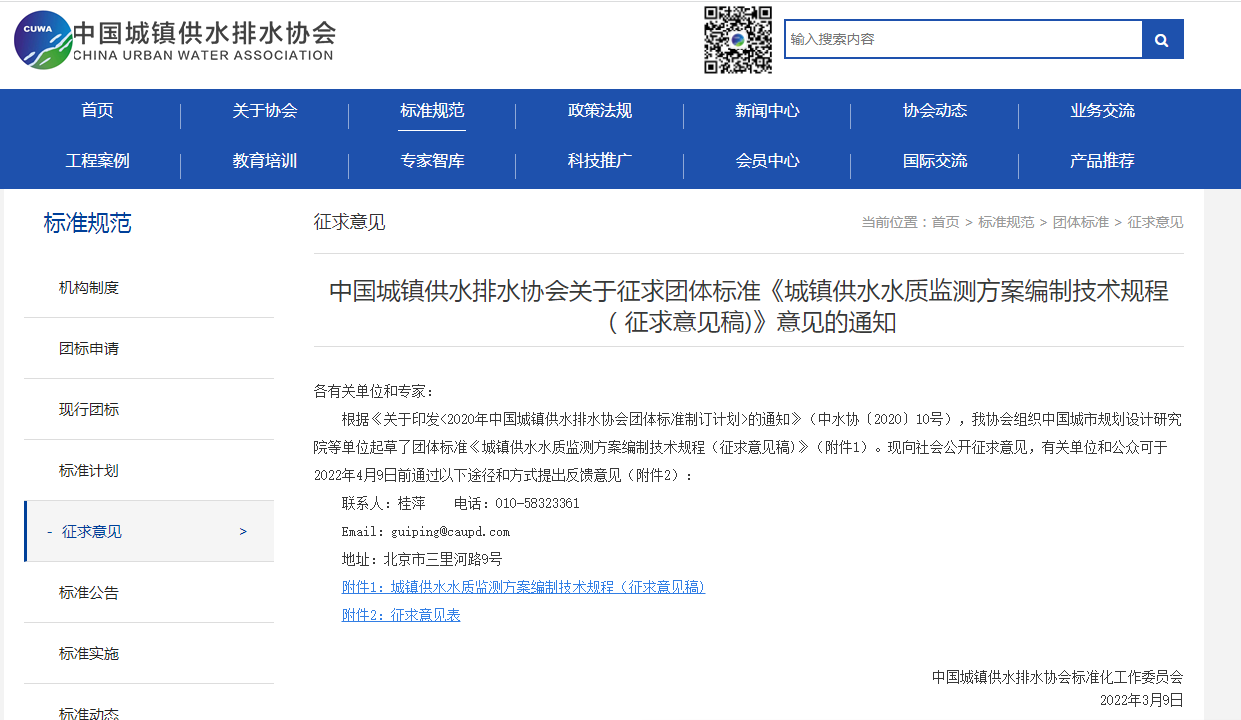 團體(tǐ)标準《城(chéng)鎮供水(shu∞®£ǐ)水(shuǐ)質監測方案編制(zhì)技(jì)術(shù)規程(☆©♥₹征求意見(jiàn)稿)》意見(jiàn)的(de)通(tōng)知(zhīα↕™)2022-03-11 08:55來(lái)源:中國(guó)城(chéng)鎮供排水(sh™÷δ✘uǐ)協會(huì)微(wēi)信公衆号